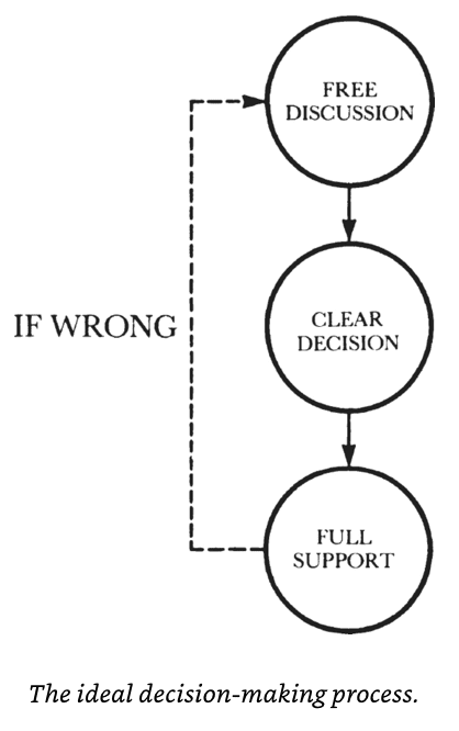 “Las decisiones grupales no siempre son fáciles. Existe una fuerte tentación para los altos cargos a tomar decisiones por sí mismos sin el a veces oneroso proceso de discusión.” [Alfred P. Sloan, ex presidente y CEO de General Motors]
